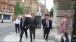 Calls for David Miliband to be sacked: Miliband through press; ENGLAND: London:EXTDavid Miliband MP (Foreign Secretary) and another through press as arriving at the BBC