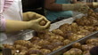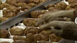 Close up of factory workers inspecting potatoes moving along a conveyor. - HD 映像素材