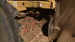 Close up of the combine gathering the overturned potatoes from the ground. - HD 映像素材