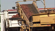 Close up of the combine's arm transferring the potatoes to the truck. - HD 映像素材