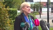 Irish presidential candidate Heather Humphreys is asked about the exiting of Jim Gavin from the election during her visit to St Dominic's Grammar School in west Belfast on Monday.