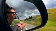 Man with Dark Shades on the Side Mirror of Vehicle Going to Idaho Falls