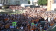 Formula One: McLaren Racing Live event / Lando Norris interview; ENGLAND: London: Trafalgar Square:EXTLando Norris (F1 driver) on platform, waving to cheering crowd of fans below