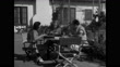Actors such as Ralph Bellamy and Humphrey Bogart play tennis, relax, and sit by the pool at the famous Palm Springs Racquet Club.