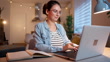 ノートパソコンを使いながら自宅で勉強している現代の若い女性 - 4K 映像素材