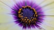 Osteaspermum purple yellow daisy flower macro 4K with detail of pollen and blossom. Bright yellow and purple colours