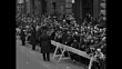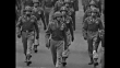 Probably the beginning of the parade in Washington Square Park at Washington Square Arch, General James Gavin leading paratroopers of 82nd Airborne Division, movie camera at far right / parade further up Fifth Avenue, crowds pack sidewalks / various shots crowd behind barricade with police in front / parade / MS soldier walking up to Gavin during parade and communicating something to him / various shots paratroopers marching, looks like a reporter and photographer walking in street / paratroopers marching by, man filming with camera to side / section of street as marching soldiers come into view / looking up the avenue from behind / marching and crowd to side / LS paratroopers marching toward camera / looks like honor guard marching ahead of paratroopers