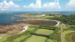 Aerial video from a drone of the island of St Agnes in The Isles of Scilly, Cornwall, UK. Captured in August 2023.