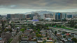Aerial establishing shot of Junipero Serra and Guadalupe freeway interchange overlooking SoFA, a neighborhood in San Jose, Santa Clara County, California Authorization was obtained from the FAA for this operation in restricted airspace.LOG/Flat version available. Please contact sales for more information.