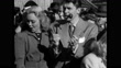 Columnist Louella Parsons hosts actors and actresses, including future President Ronald Reagan, in front of a theater as they sign autographs outside a theater for eager fans.