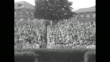 VS Vassar sophomore women, all in white, stand with large daisy garland; the girls stand in a group at a concrete structure with arches; the women walk en masse through the audience, during commencement exercises, with the long rope of the elaborate flowers; they sing as a 'conductor' leads them / June Boone wears the flowers / The girls walk with a '1928' banner / Note: exact month/day not known