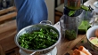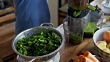 A young boy making a Juice with a slow juicer, at home on the kitchen table. - 4K 映像素材