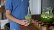 A young boy making a Juice with a slow juicer, at home on the kitchen table. - 4K 映像素材