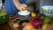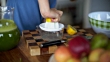 A young boy making a Juice with a slow juicer, at home on the kitchen table. - 4K 映像素材