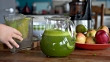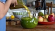 A young boy making a Juice with a slow juicer, at home on the kitchen table. - 4K 映像素材