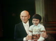 Yul Brynner dies; TX. 22.2.80 ITNENGLAND: London Palladium:CMS Yul Brynner with Vietnamese boat boy, Richard Chau, on knee as they pose (Brynner paid his school fees)