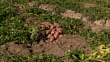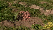 Zoom in to a pile of potatoes in a field. - HD 映像素材